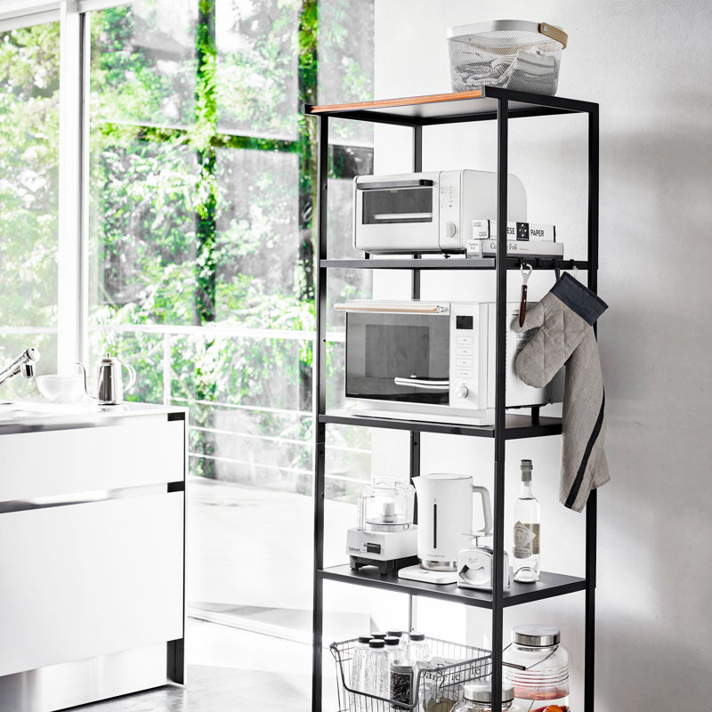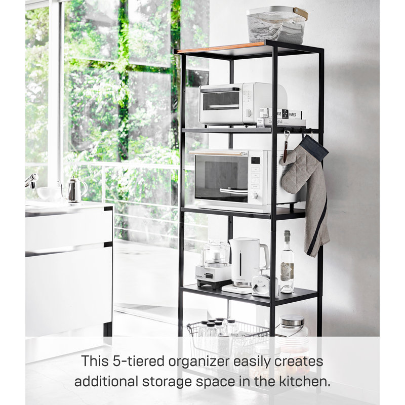 - [5-Tier Storage Rack] This 5-tiered organizer creates additional storage space easily in the kitchen for mid-sized appliances such as toaster ovens, microwaves, and blenders, as well as dry foods or spices, keeping your counters and floors organized.